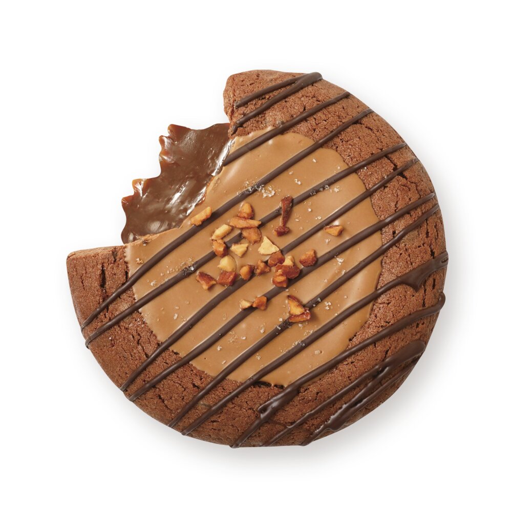 しっとりとしたココアクッキー生地にチョコチップをたっぷり混ぜ込み、とろ〜り濃厚なキャラメルソースを閉じ込めた、まさに“とろけるご褒美”です。