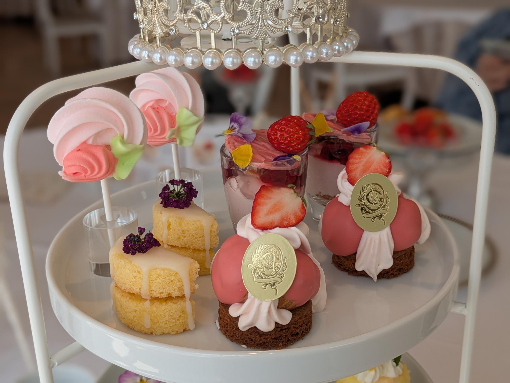 いちごをはじめとした旬の果実、パステルカラーのスイーツが並ぶティースタンドは、