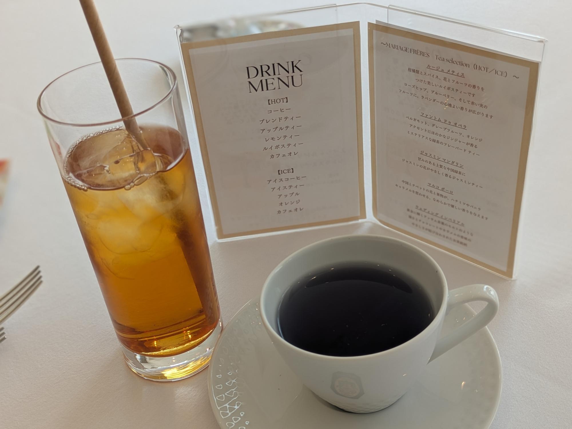 紅茶やハーブティー、コーヒーなど種類も豊富で、スイーツやセイボリーとのペアリングを楽しみながら、ゆったりとしたティータイムを過ごせました。