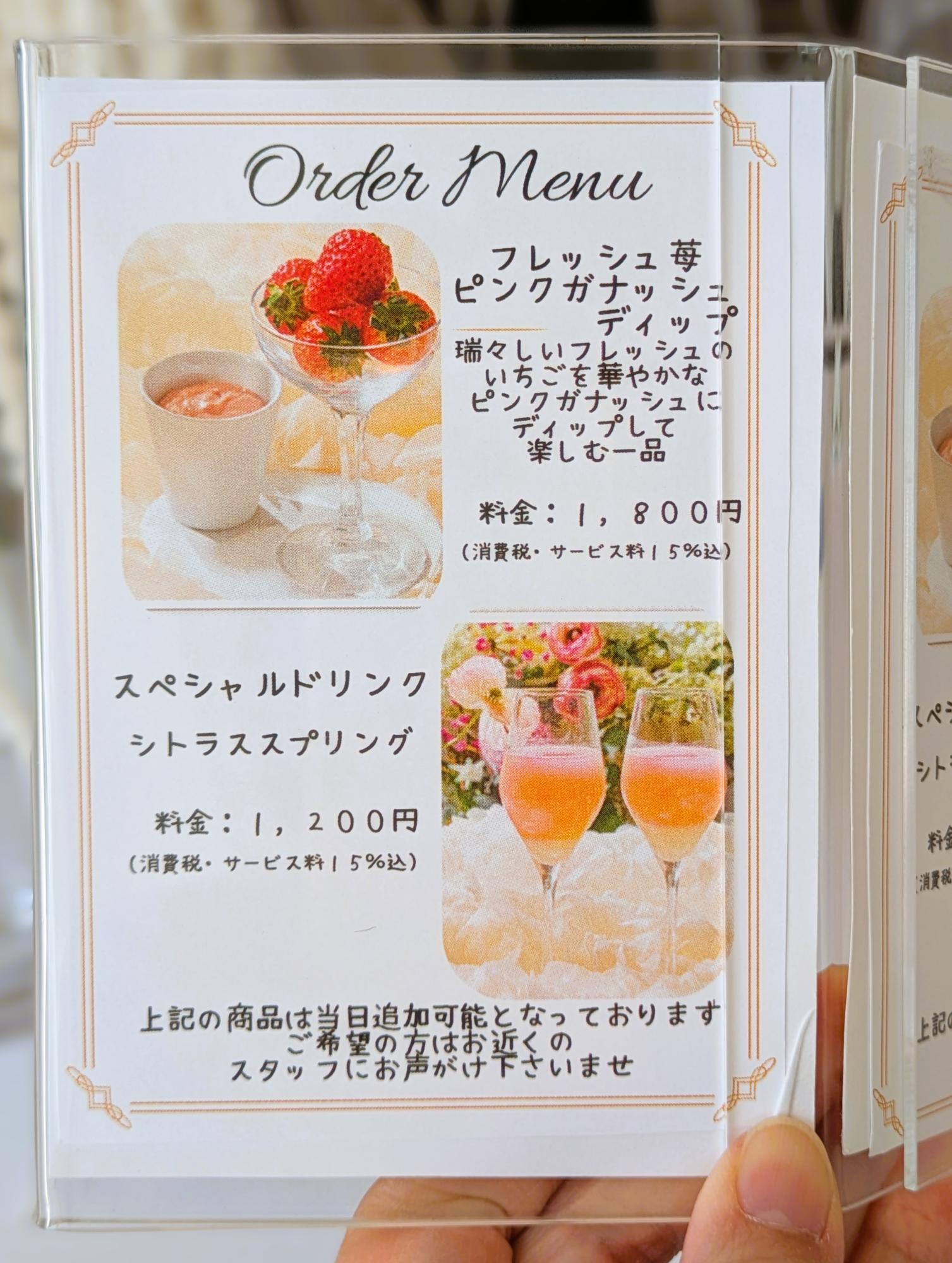 こちらはオプションメニューで、アフタヌーンティーに華やかさをプラスしたい方にぴったりです。