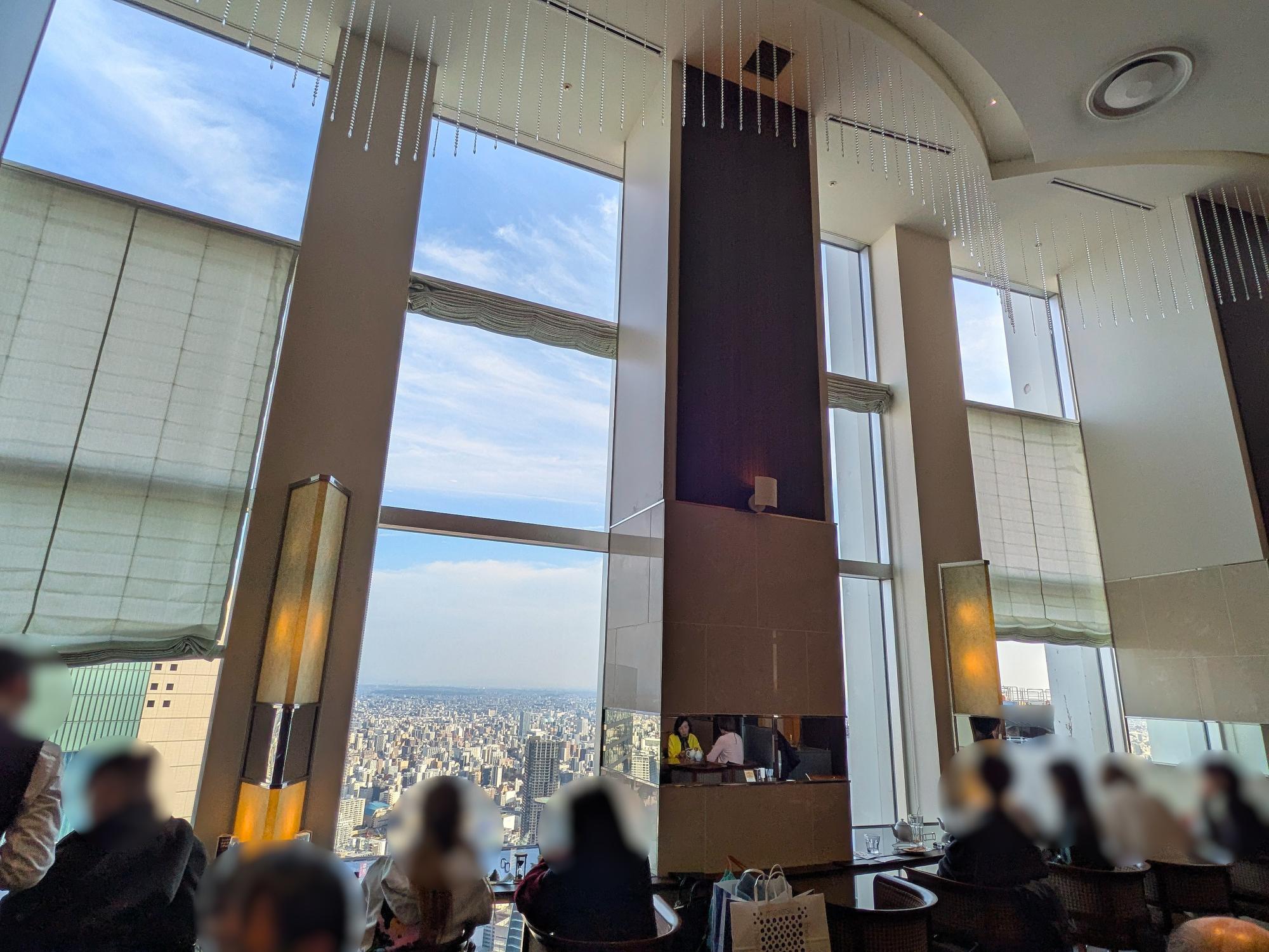 店内には、名古屋の街並みを一望できる窓際席や、ゆったりと過ごせるテーブル席が並びます。高層階ならではの開放感と落ち着いた雰囲気があり、食事や会話をゆっくり楽しめる空間です。