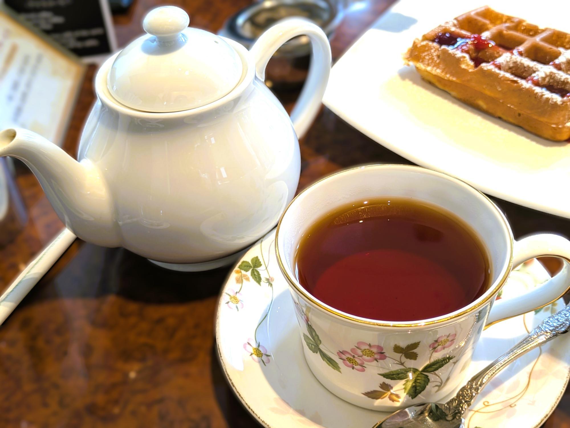 紅茶は、オリジナルブレンドティーやダージリン、アップルティーなど全10種類とバリエーションが充実。カモミールやローズヒップといったハーブティーもそろっており、気分に合わせて楽しめます。