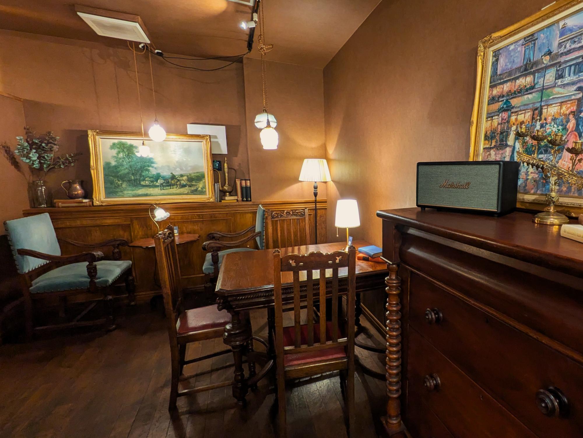 店内にはアンティークの家具が並び、 柔らかなランプの灯りがつくる陰影が、静かに心を落ち着かせてくれます。