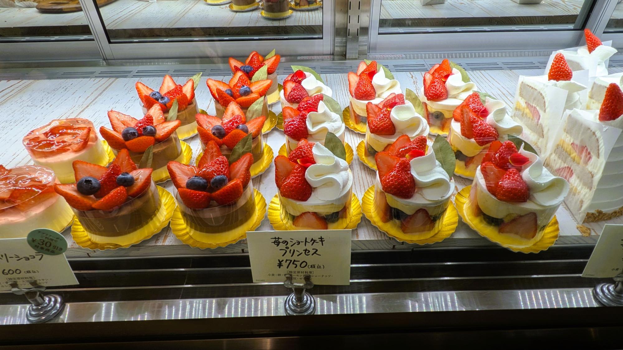 左から、苺のレアチーズ、べリーベリーショコラ、苺のショートケーキプリンセス、苺のショートケーキ(黒糖)