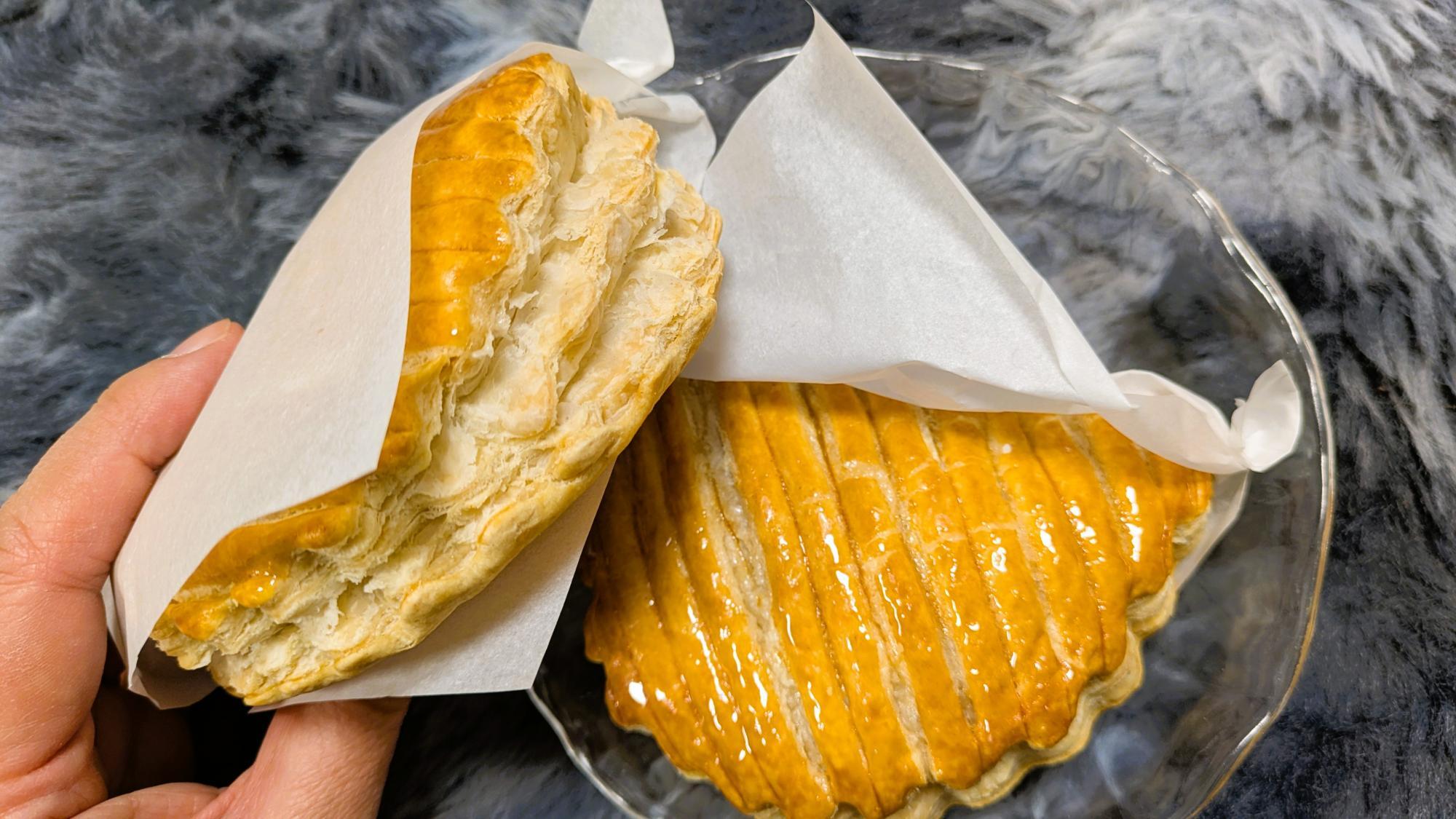 艶々の焼き色がとても美味しそうで、パイ生地がさくさくほろほろです。