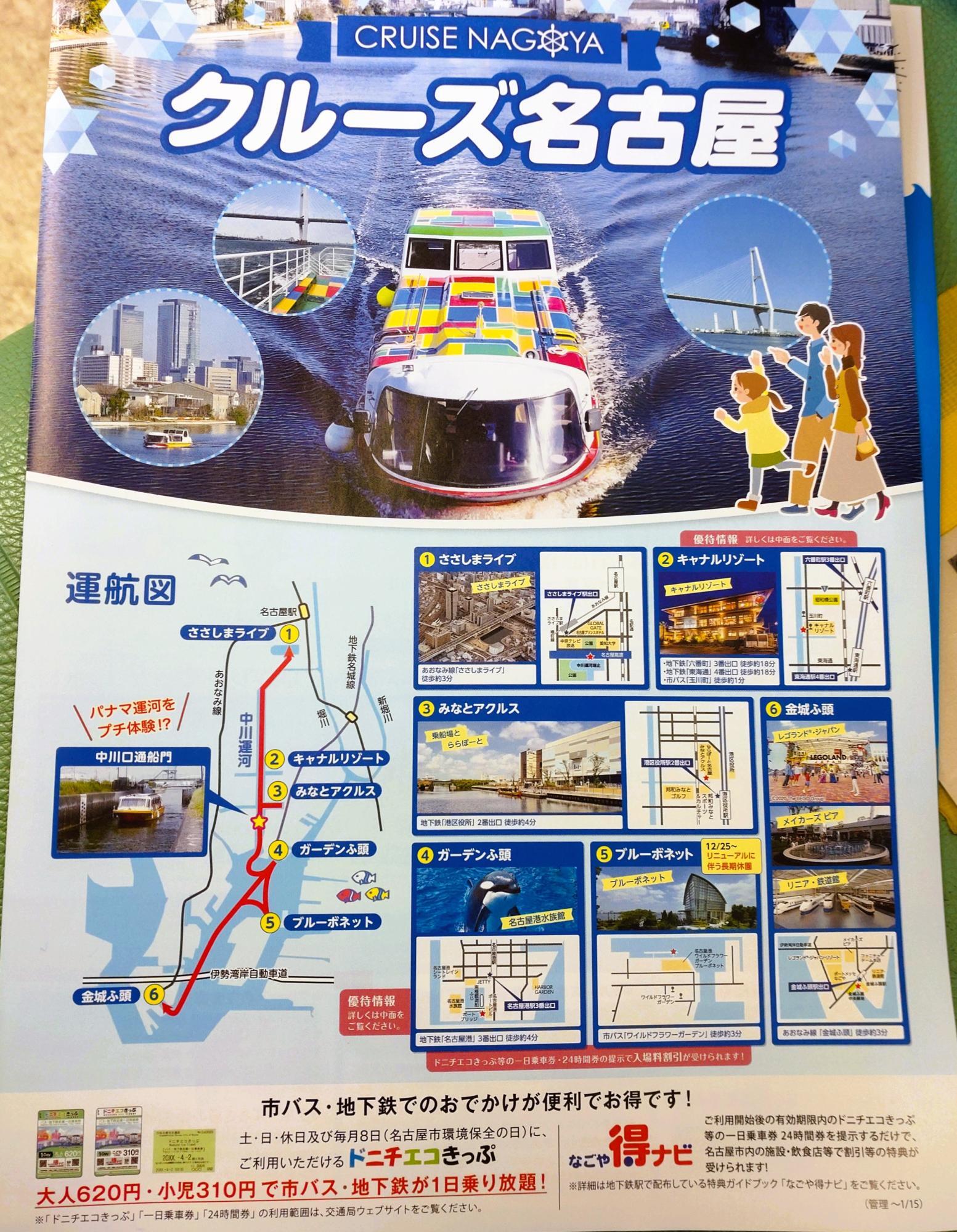 このクルーズは、歴史ある中川運河を航行し、名古屋港水族館などの人気スポットへのアクセスを提供しています。