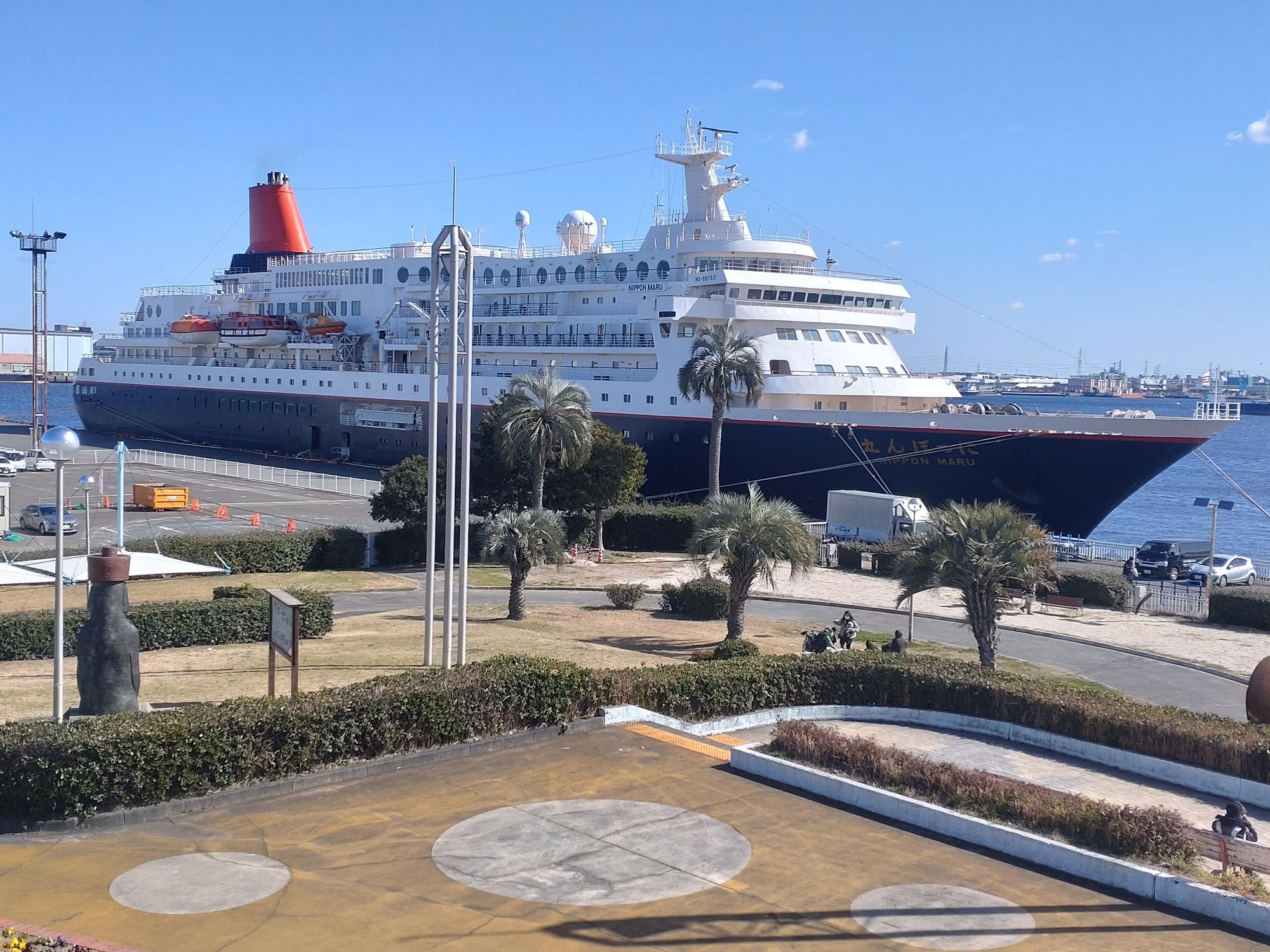 ガーデンふ頭に近づくと、大型客船「にっぽん丸」が停泊していることがあります。