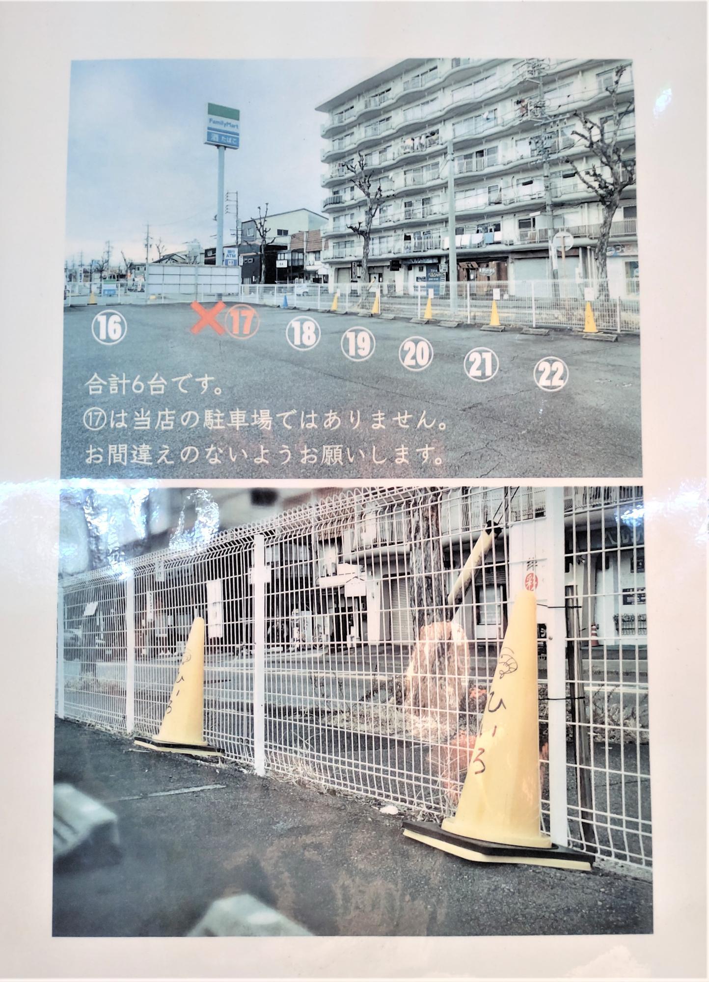 お店の駐車場以外には停めないようにしてくださいね。