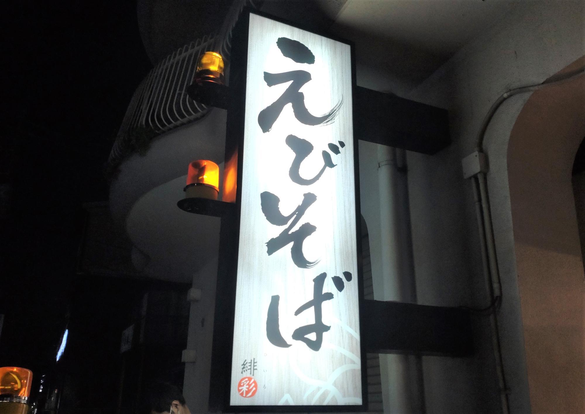 「えびそば」と光る看板が目印です。