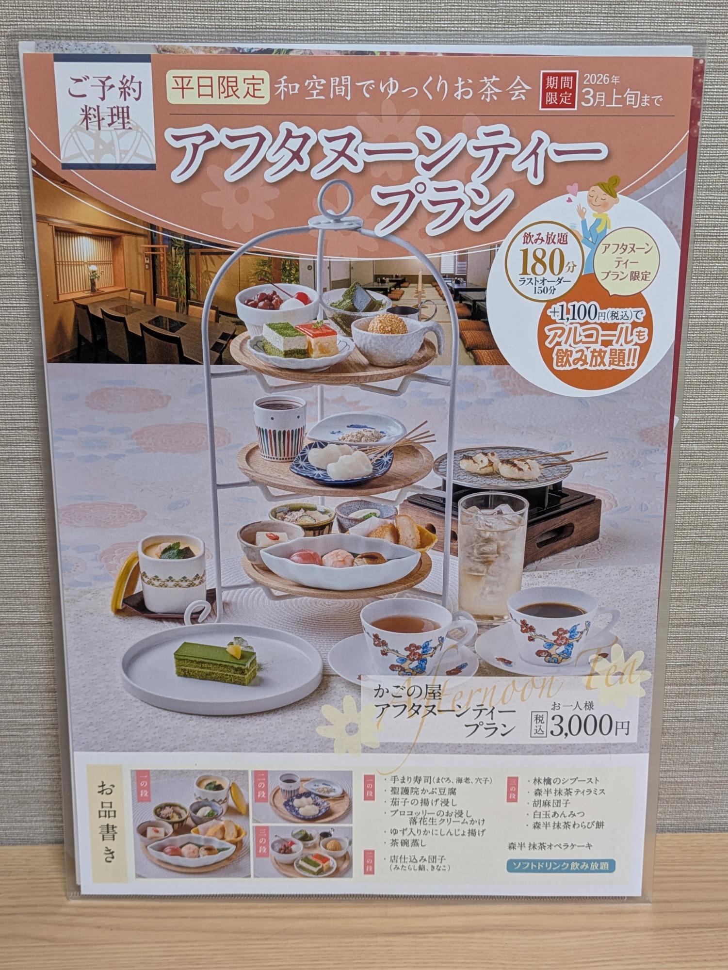 【名古屋市】かごの屋でいただくお食事としても楽しめる平日限定「和のアフタヌーンティー」が密かに人気!【2026】