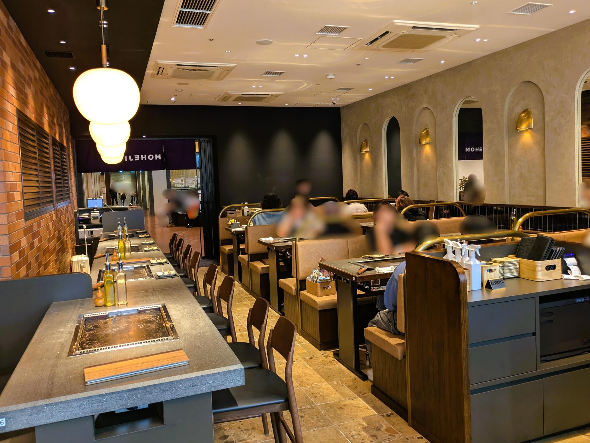 店内にはカウンター席、ボックス席、個室があり、鉄板の音や香ばしい香りに包まれながら、ライブ感あふれる食体験ができます。 シンプルで洗練された空間は、落ち着きがありながらも肩ひじ張らずに過ごせる心地よさ。 目の前で焼き上がる様子を眺めながら、五感で味わう、そんな贅沢な時間が待っています。