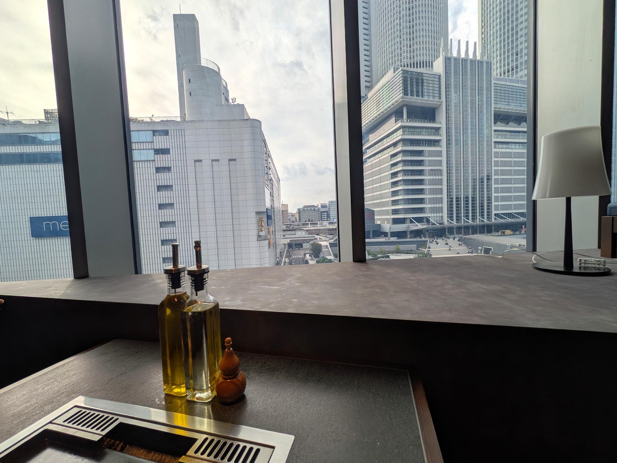 窓側のお席からは、名古屋駅周辺の街並みを眺めながら、ゆったりとした時間を過ごすことができます。