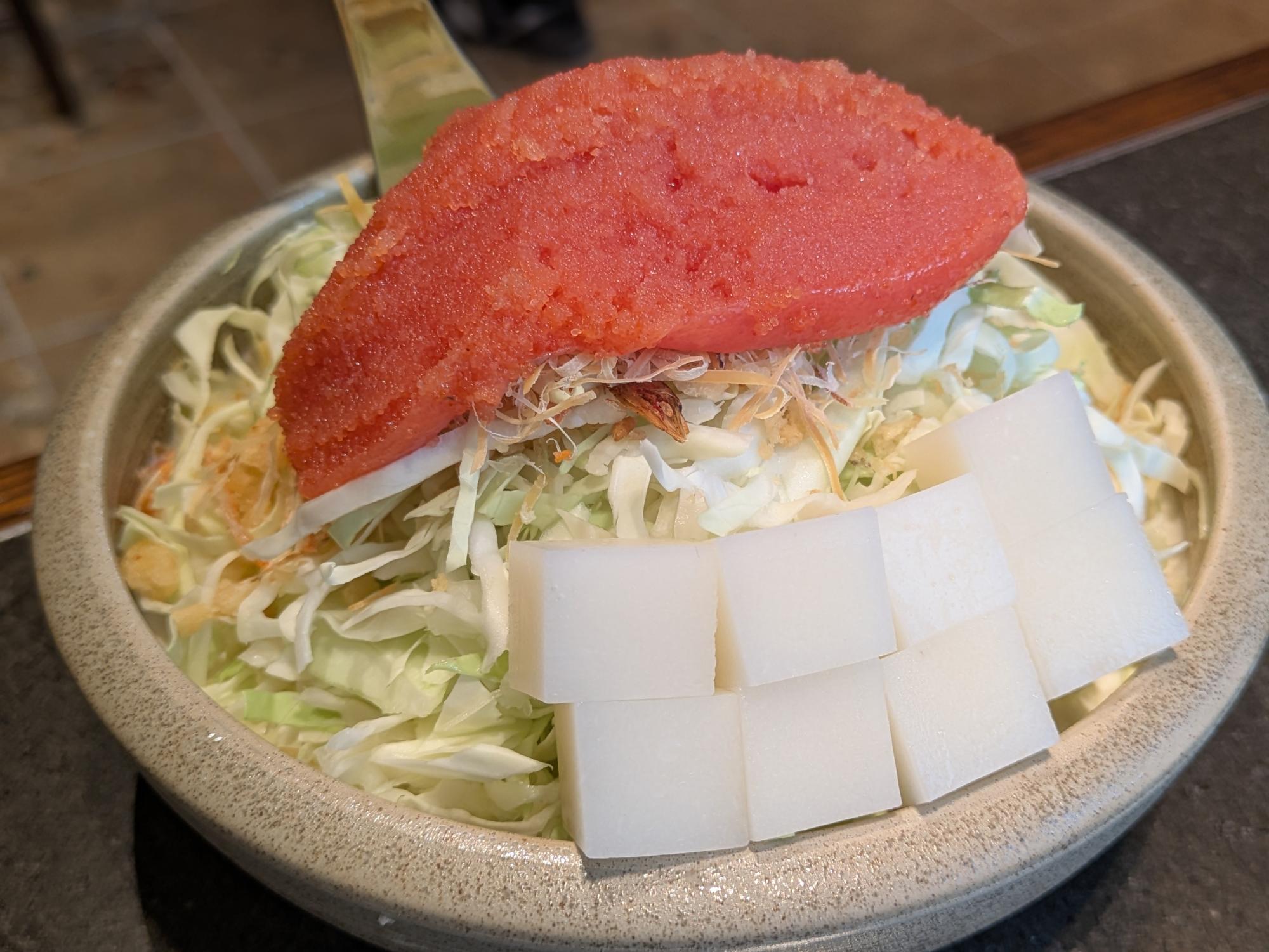次はいよいよ、もんじゃ焼きに突入。 「明太子ともちもんじゃ」(税込1,980円)は、「MOHEJI」のいちばんの推しメニュー。 初めての来店なら、まずはこの一品は食べておきたい一品です。