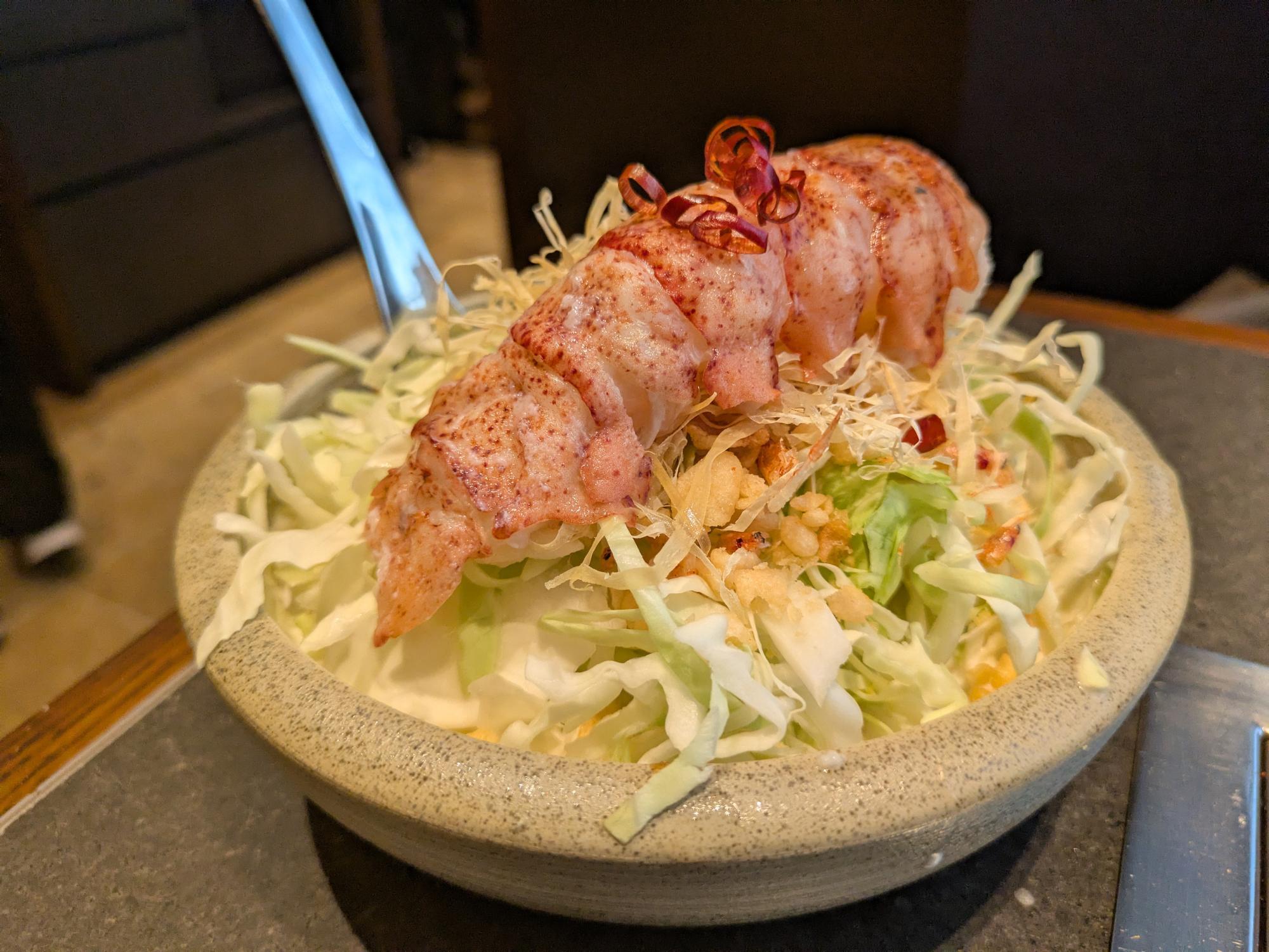 さて、最後にご紹介するのは、今回最も楽しみにしていた「オマール海老のビスクもんじゃ」(税込4,730円)。 高級食材であるオマール海老を惜しげもなく使い、濃厚なビスク仕立てに仕上げた、ここでしか味わえない贅沢な一皿です。 運ばれてきた瞬間、見た目のインパクトに思わず目を奪われました。