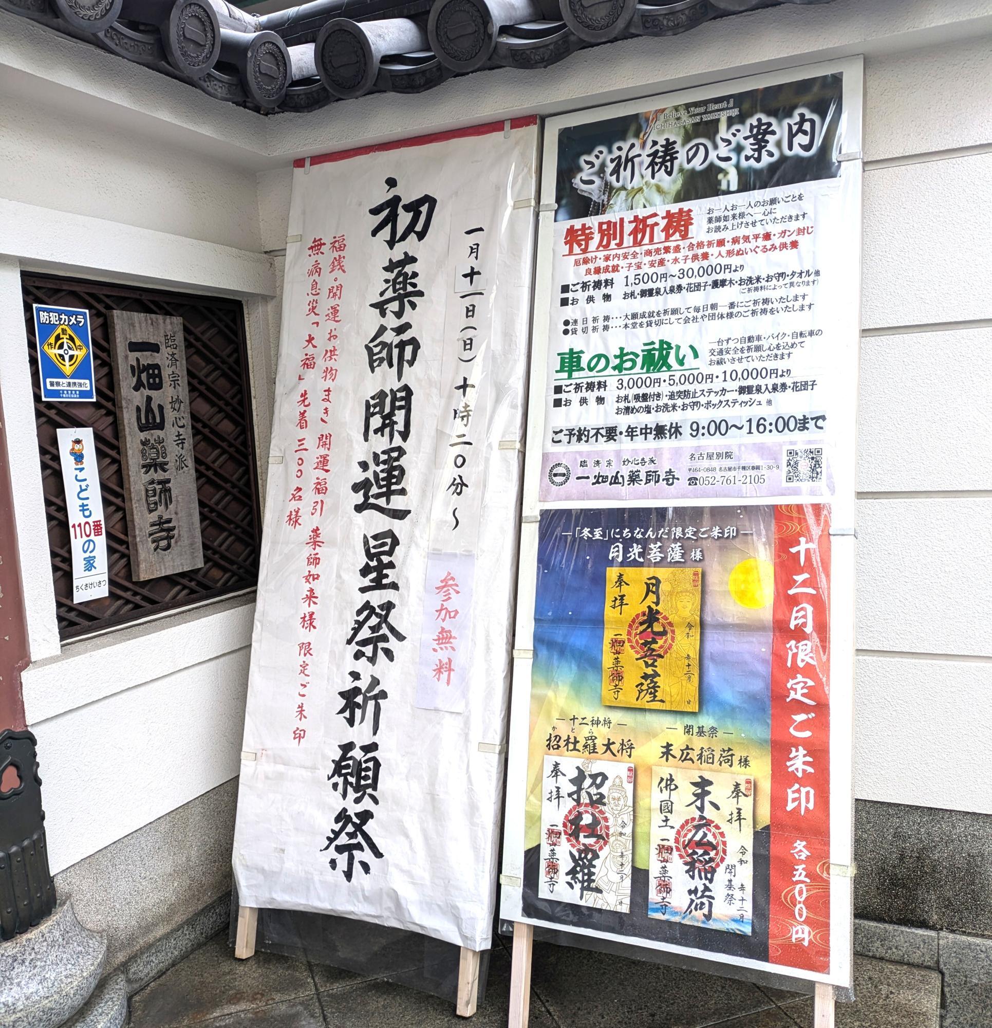 2025年12月8日(月)より、名古屋市千種区にある一畑山薬師寺 名古屋別院で、