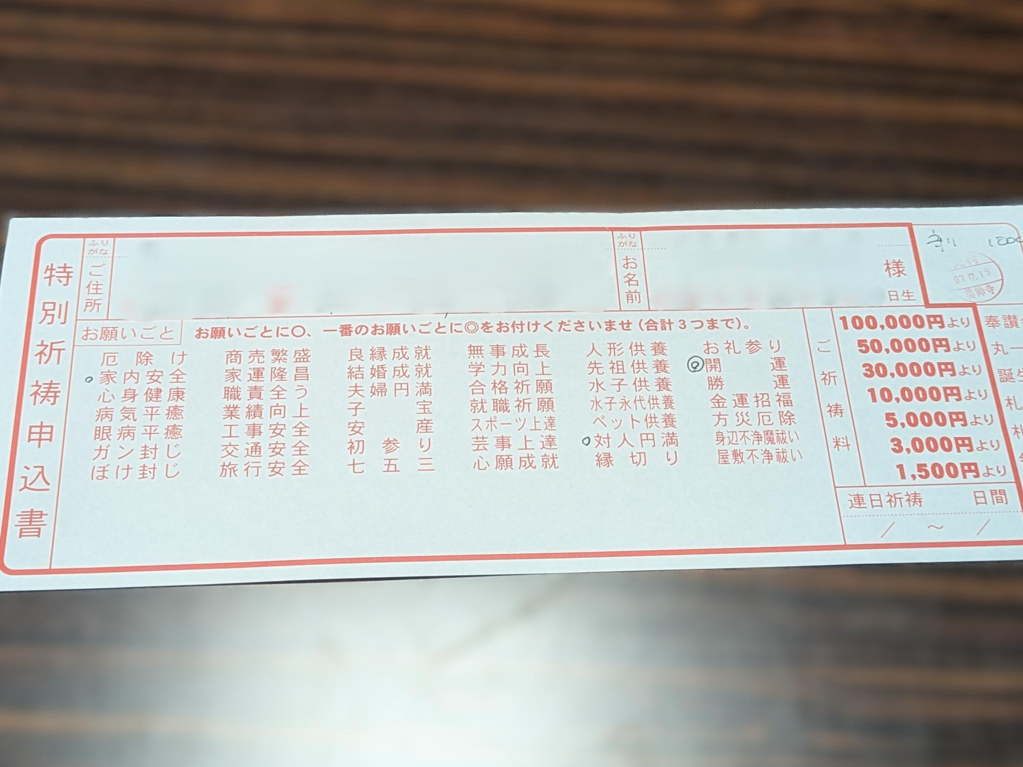 通常、御祈祷は1,500円〜ですが、お守りづくりとセットでお願いすると、両方合わせて2,000円で受けられるとのこと。 心を込めて作ったお守りに、さらに祈りを重ねたい方におすすめです。