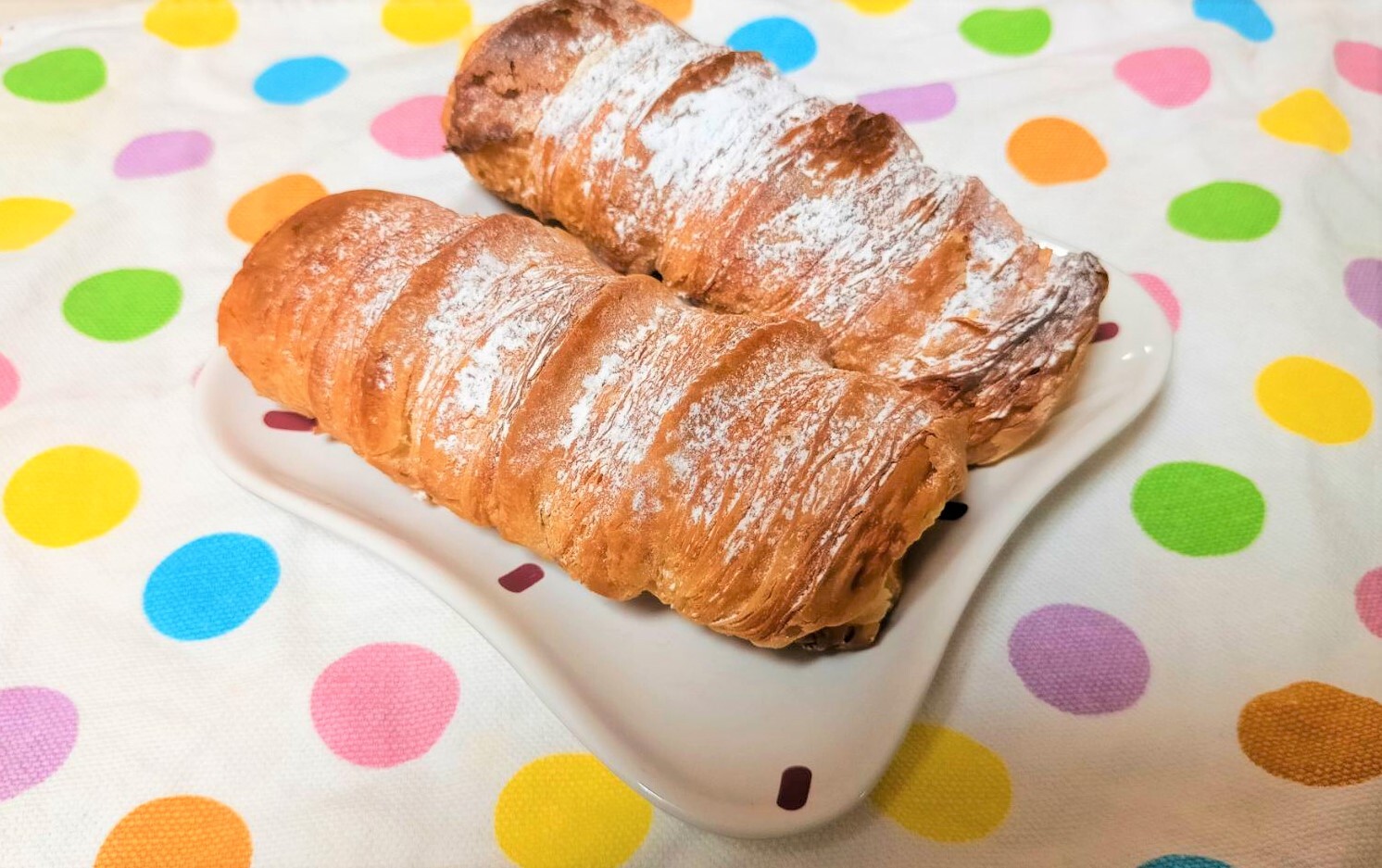 アーモンドクリームを搾り、焼き上げたデニッシュはほろほろさくさくです。
