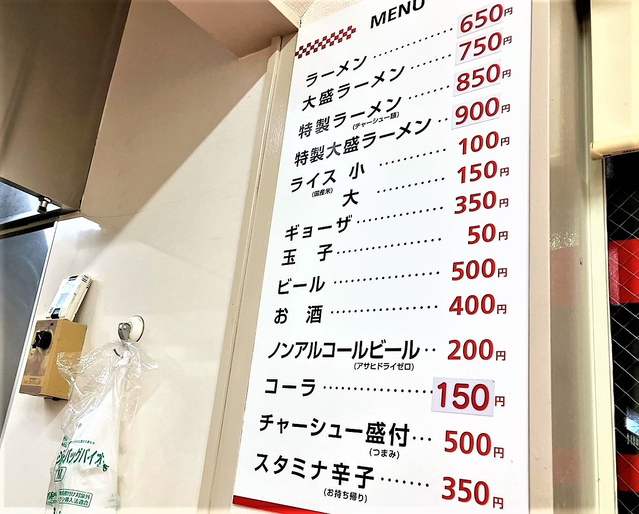 ラーメン(650円)は、モヤシ大盛でもお値段変わらず650円!