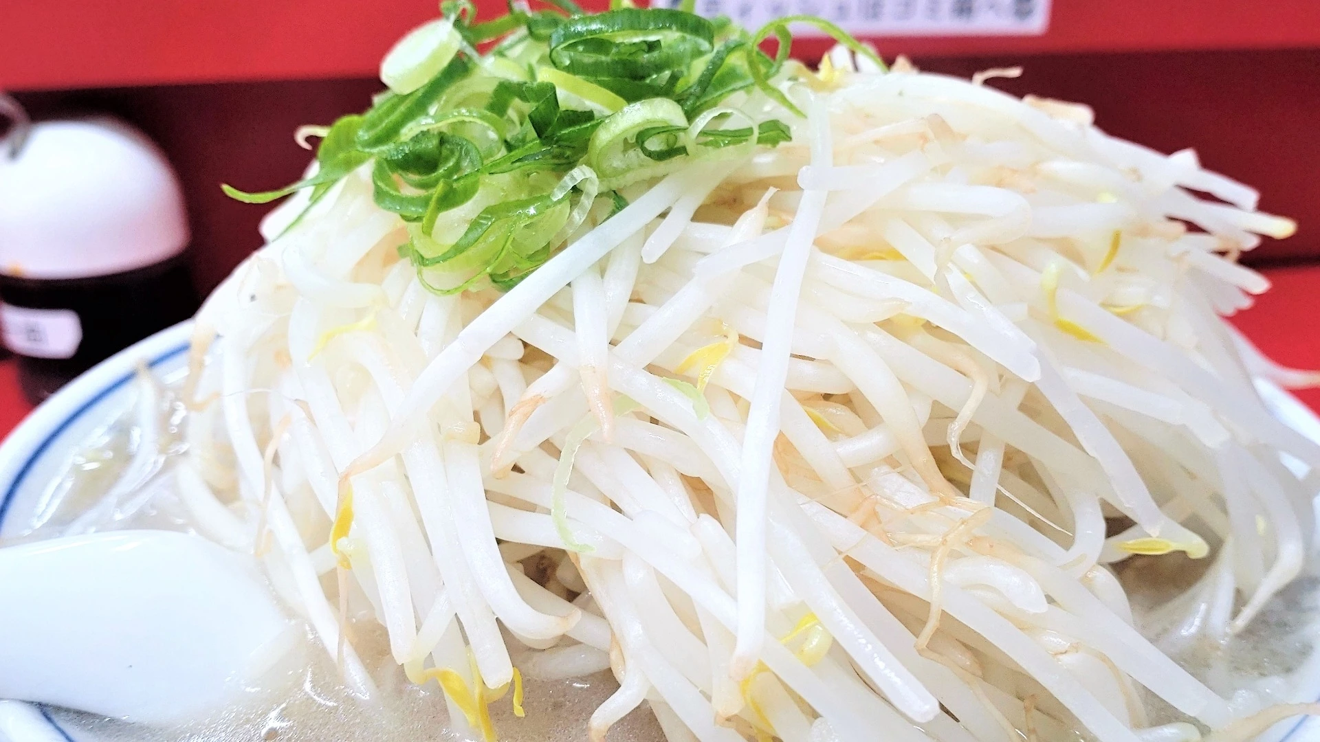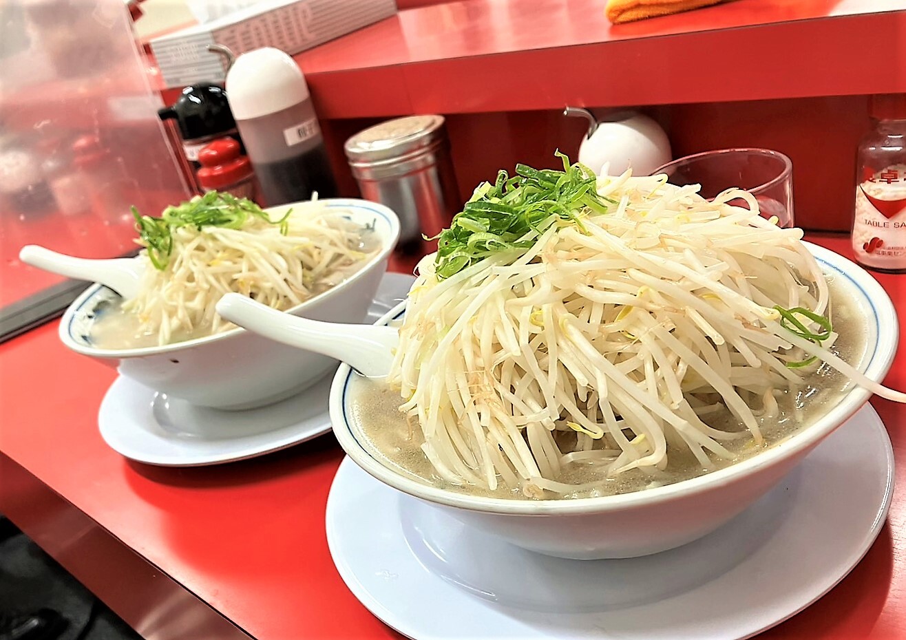 モヤシやネギの量は無料で増量できます。この量のモヤシは他では見られない無料サービスです。