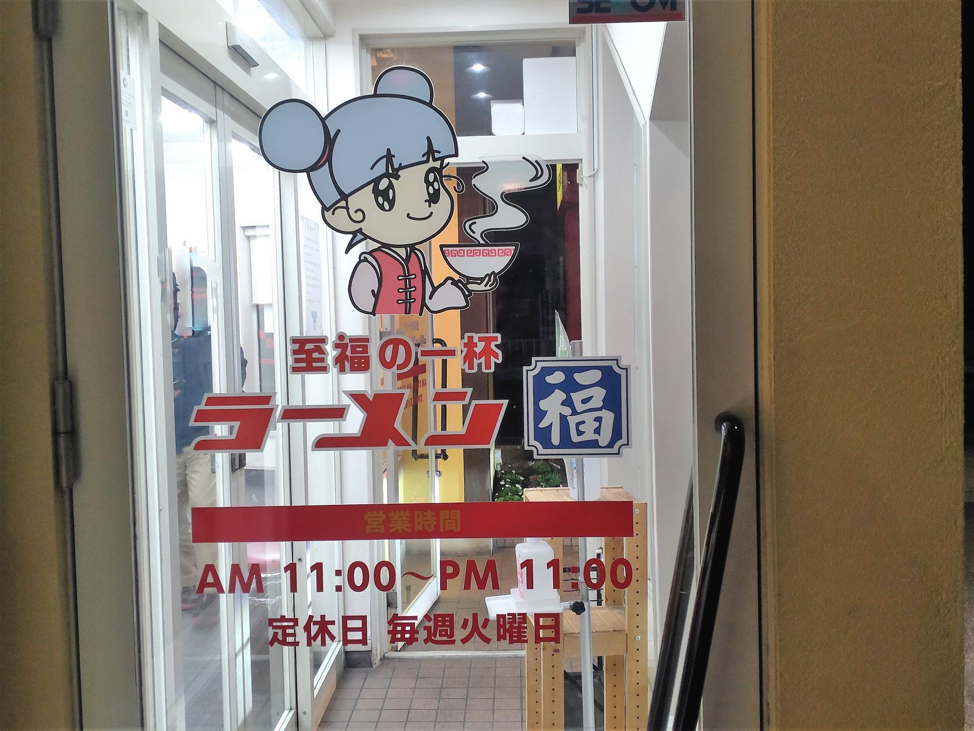 キャラクターの「福ちゃん 」が出迎えてくれます。