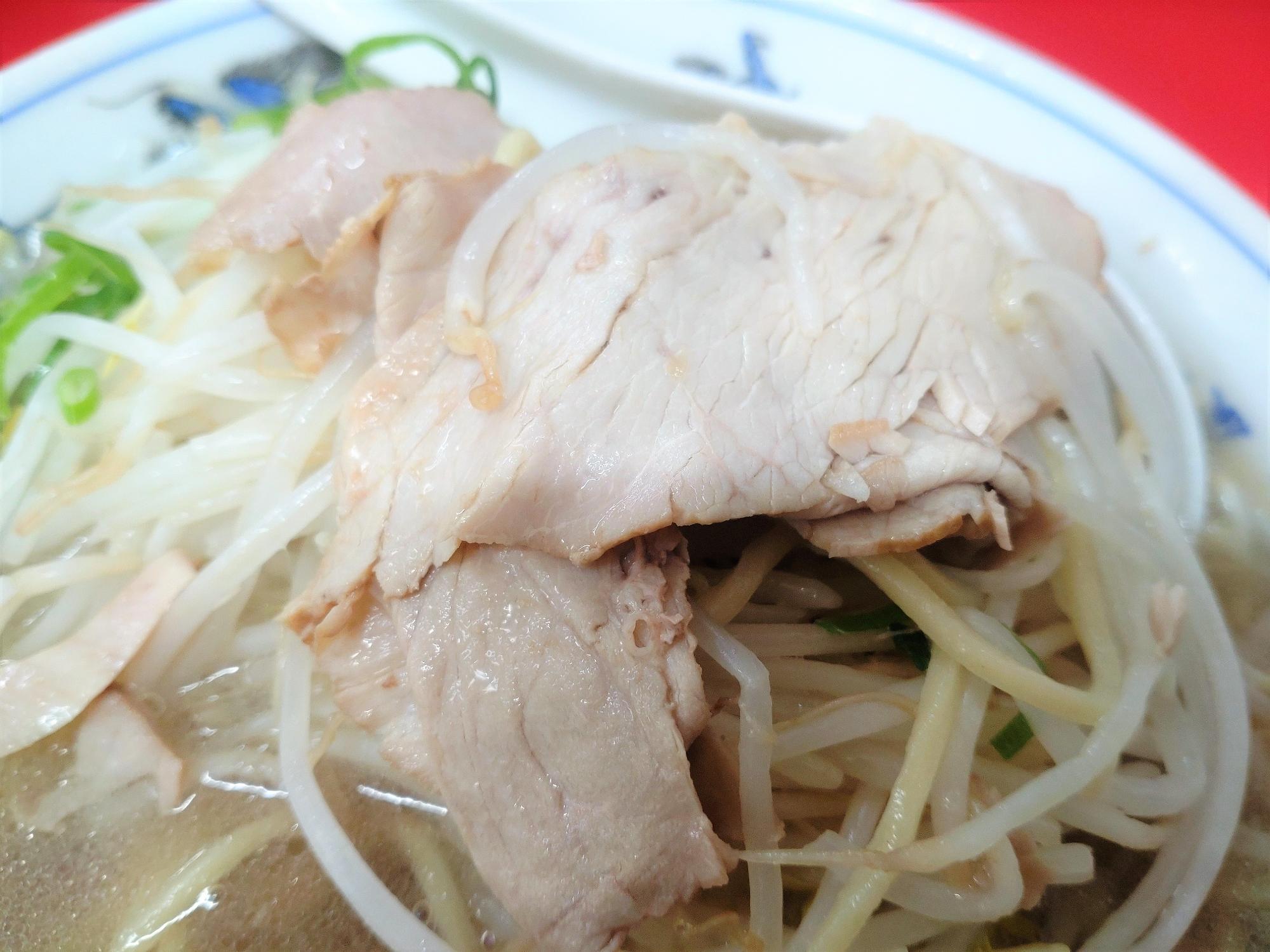 野菜の下には隠れるように、薄切りのチャーシューも潜んでおり、宝探しのように掘り起こしていきます。