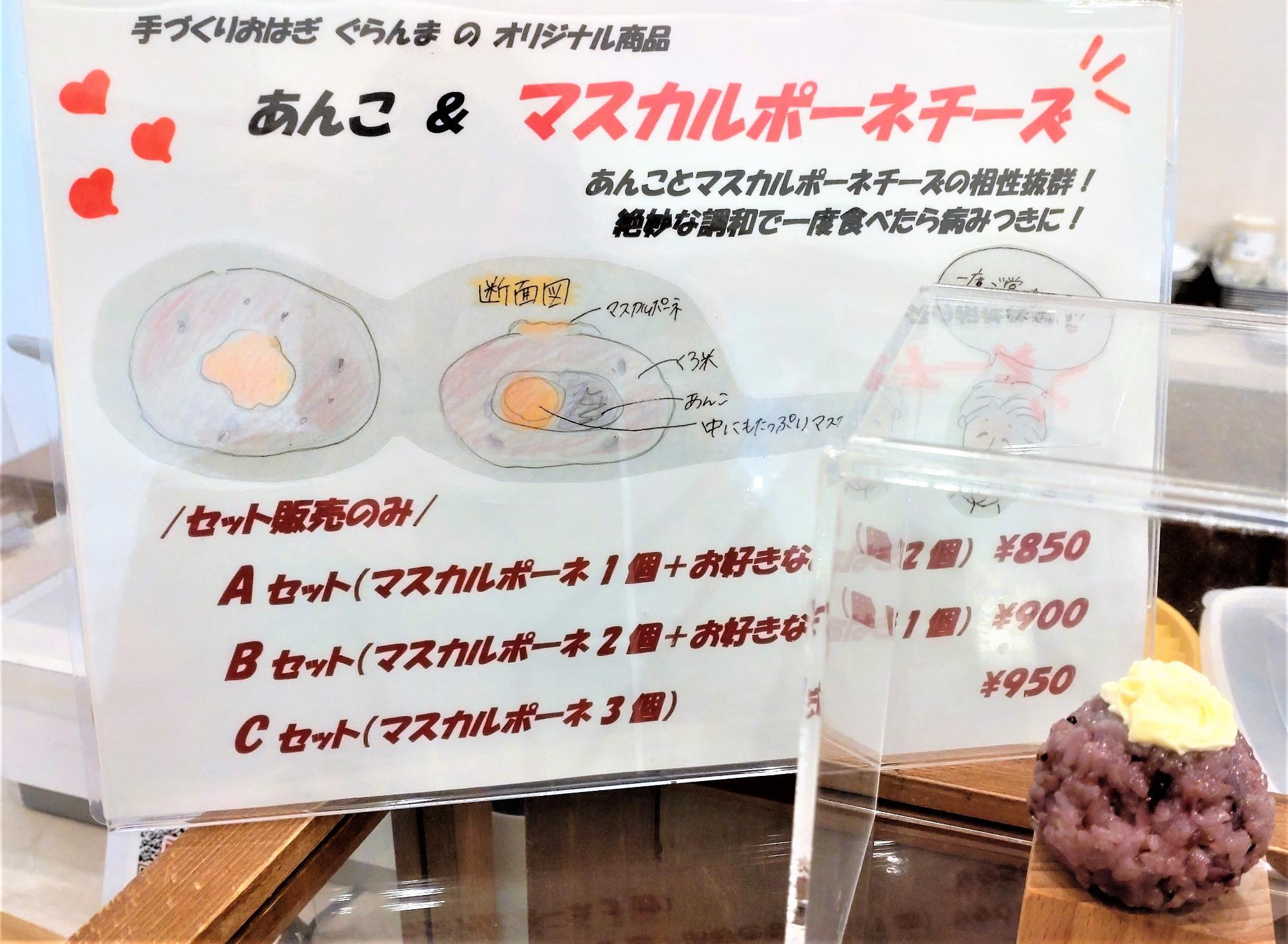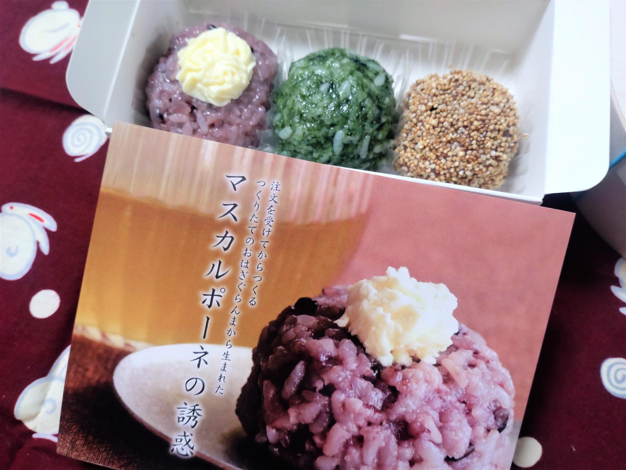 Aセットは、マスカルポーネと好きなおはぎを2つ選べるセットです。 今回は「よもぎ」と「くろ米ももの華」を入れていただきました。