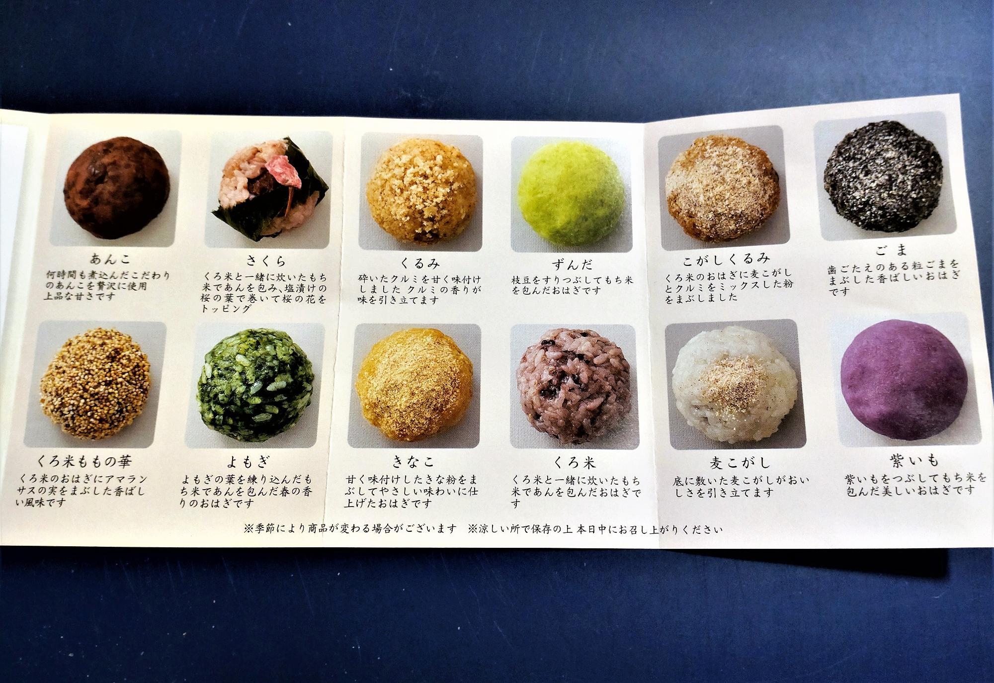 ・あんこ ・ずんだ ・ゴマ・さくら ・クルミ ・こがしクルミ