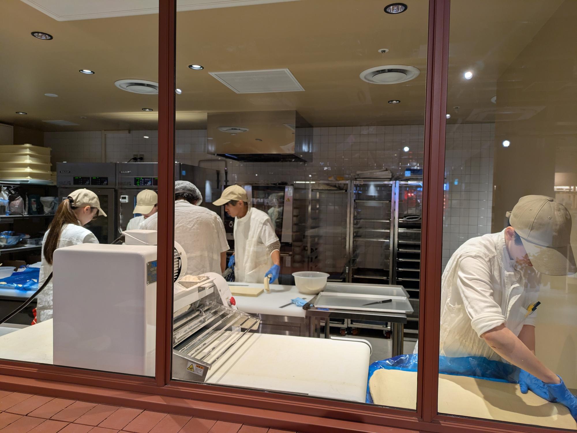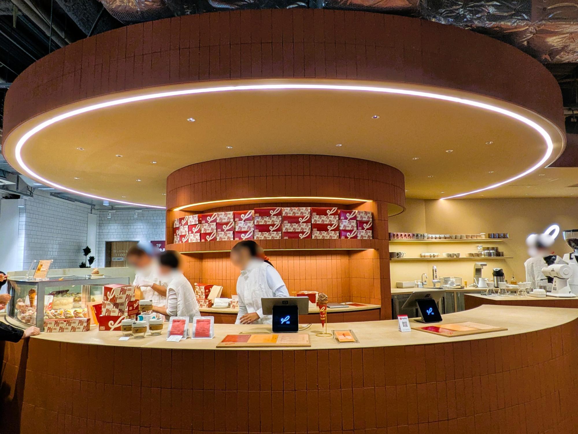 そしてもうひとつの見どころは、オープンカウンター。焼きたてのクロワッサンにクリームを詰める様子を目の前で楽しめる、ライブ感たっぷりの演出です。香ばしい香りに包まれながら、できたてをその場で味わえるのは、ここならではの楽しみ。