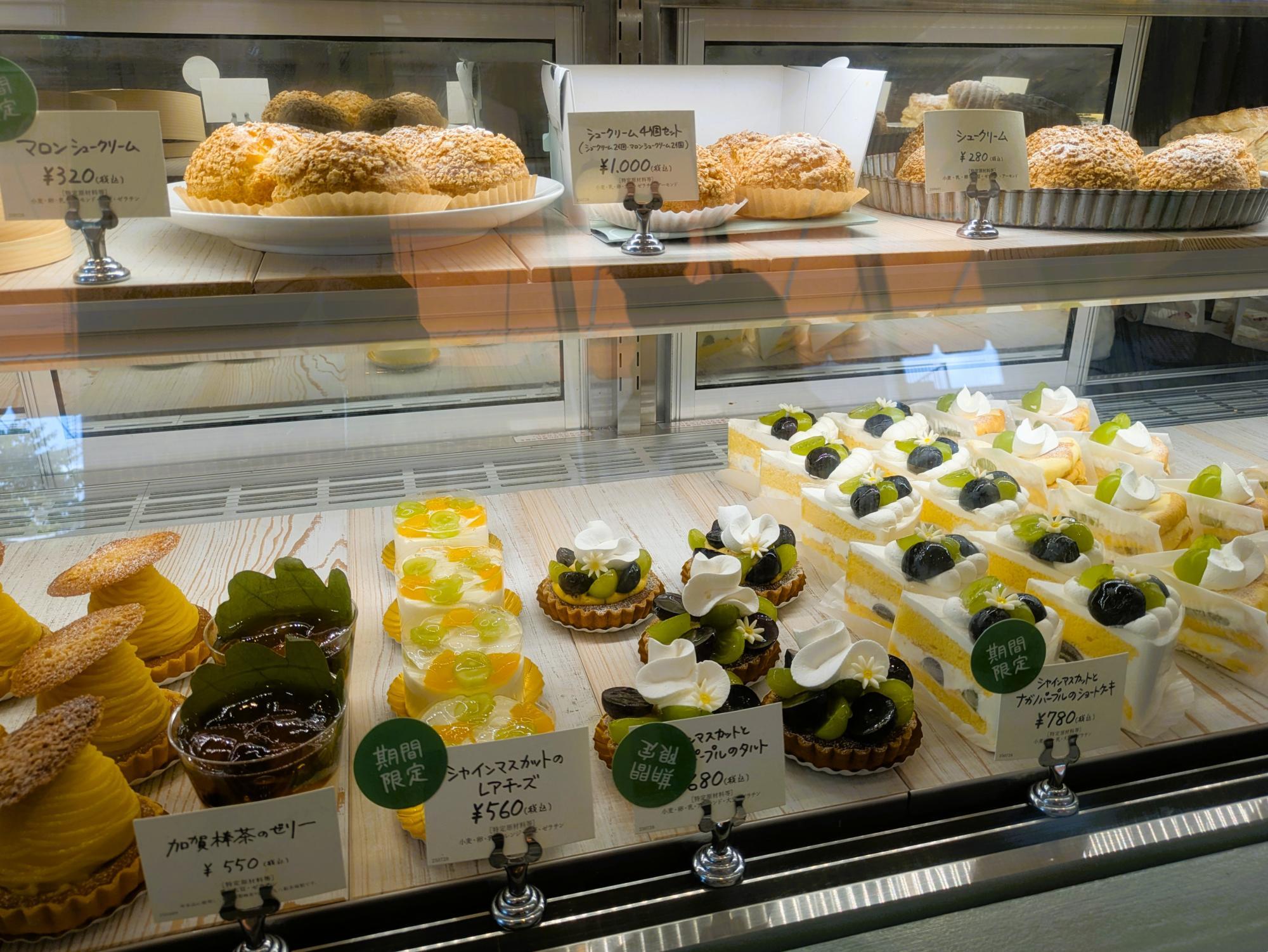 落ち着いた雰囲気の店内には、季節感あふれるスイーツがずらりと並び、訪れるたびに新しい発見があります。
