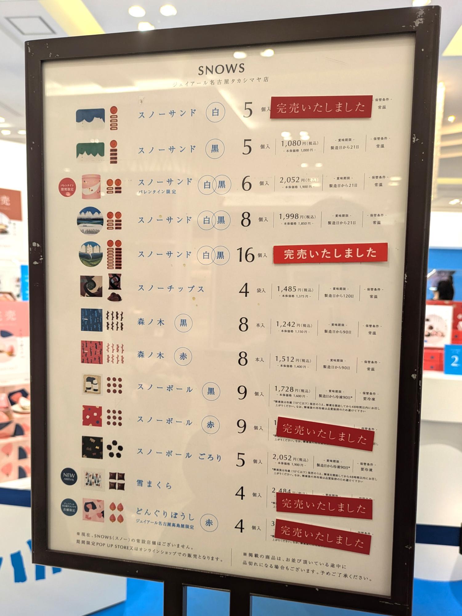 土日の午後にもなると、午後にはほとんど完売になってしまう「SNOWS」。