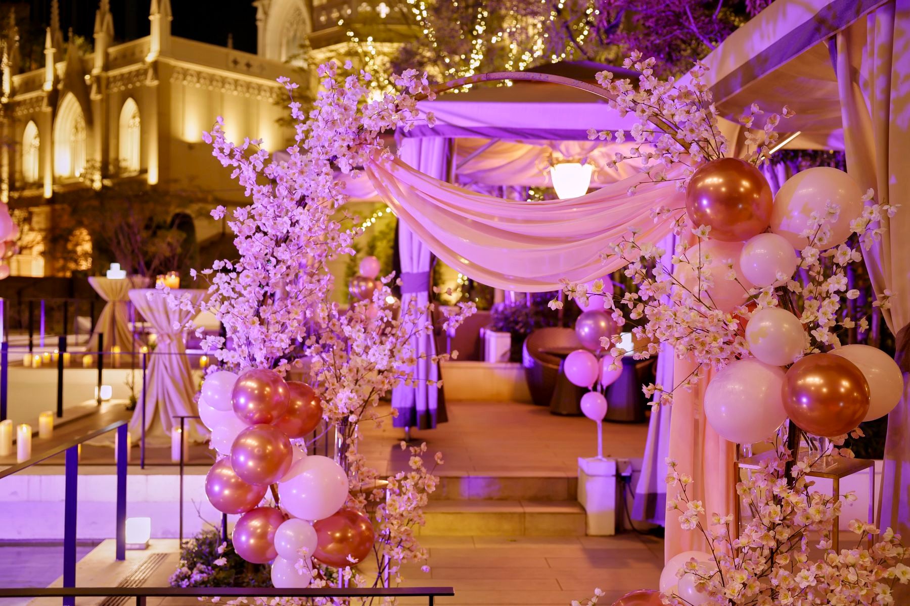 大聖堂を望む中庭「カバナガーデン」が、この日だけ 鮮やかなピンクの世界 に変わります。 バルーンやライトアップが施され、どこを切り取っても写真映えする空間に。
