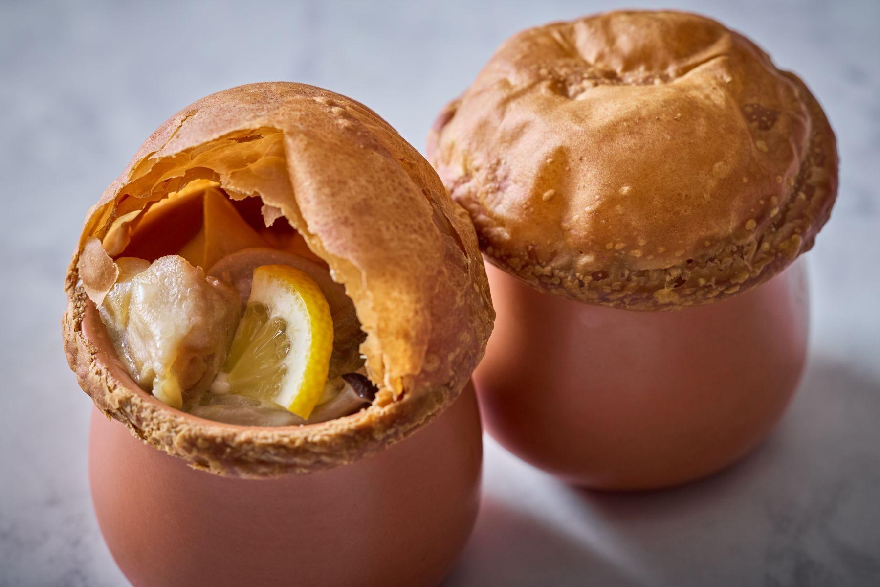 最初に運ばれてきたのは、ディナー限定のファーストディッシュ「広島県産鶏と茸のレモンクリームホットパイスープ」です。