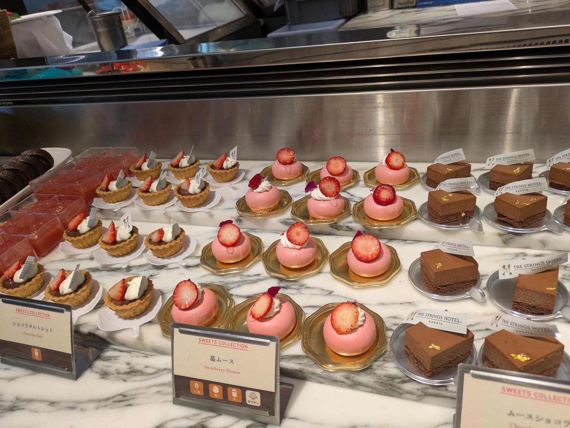 桜もちや抹茶のシフォンケーキなど、和の要素を取り入れたスイーツも並び、春らしい彩りに心が躍ります。